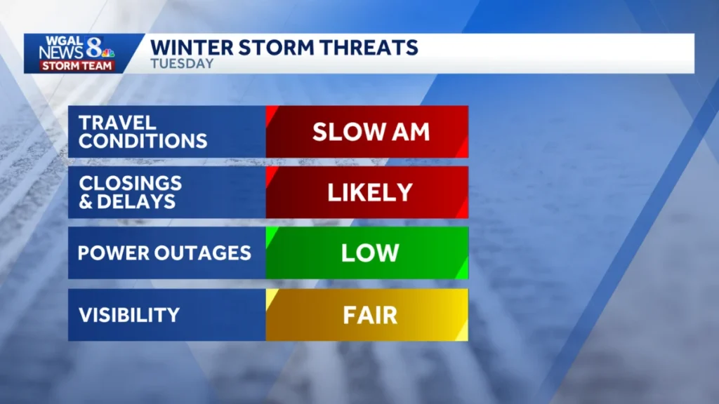 This upcoming winter storm will bring several inches of snow, messy morning roads, and a wintry mix for southern counties. The worst hits during the morning commute, with improving conditions through the afternoon. Still, watch for icy spots late Tuesday night and early Wednesday.
